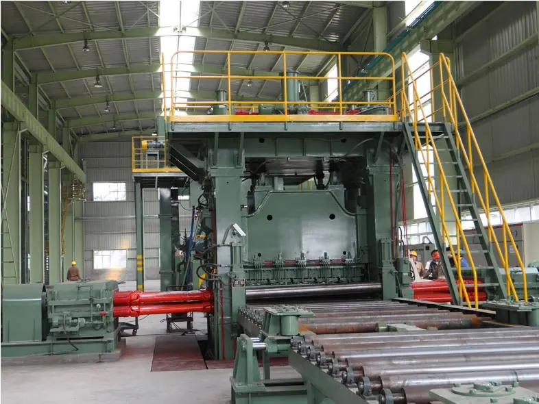 2、根據(jù)載荷的特點,選用的工作輥輥距和輥徑較大,機器剛性好,矯平精度有保證??紤]板厚整平。該輥式矯平機工作輥軸頸均采用精密軋機專用軸承,工作輥摩擦阻力小,防滑狀況大大改善,可矯直較薄的鋼板。制輥裝置采用德國SMS公司技術(shù),具有較大的輥徑與輥距比,提高了工作輥的強度,減少了盲區(qū)糾偏,提高了工件的矯平精度。滾子軸頸均采用新型軋機專用滾動軸承,使用壽命5至10年。工作輥軸承聯(lián)軸器零件的選型、結(jié)構(gòu)設(shè)計和制造應保證可靠性和耐用性,并充分考慮工作輥的軸向、徑向載荷和變形。