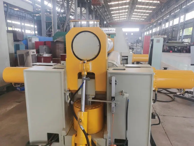 上輥的右軸承座與主油缸相連。只有拆下連接螺栓,三輥卷板機才能軸向拉出,從而快速完成換卷工作。